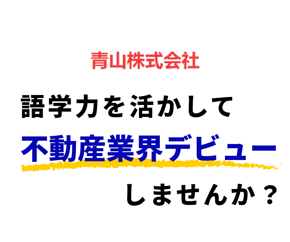 不動産業界の経験は問いません。語学力を活かした仕事をしたい方や、営業としてキャリアを積んでいきたい方はぜひご応募ください。