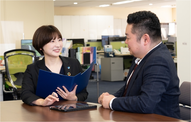 宅建などの資格取得を会社がサポート。学習環境や費用支援(規定あり)が充実しており、スキルアップやキャリアの幅を広げながら、専門性を高めることができます
