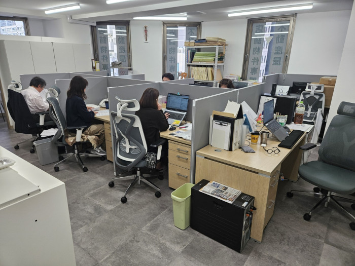 現在、役員1名、営業担当(男性)3名、(女性)1名、事務担当(女性)2名、パート社員(事務)1名、業務委託(営業)1名の計7名が在籍しています。