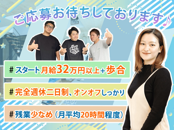 未経験者大歓迎!アパレル販売の経験者が大活躍!異業種・営業未経験者でも月給32万円以上!圧倒的な商品力で“売りやすさ”抜群。業界でも高く評価される人気デザイン住宅です